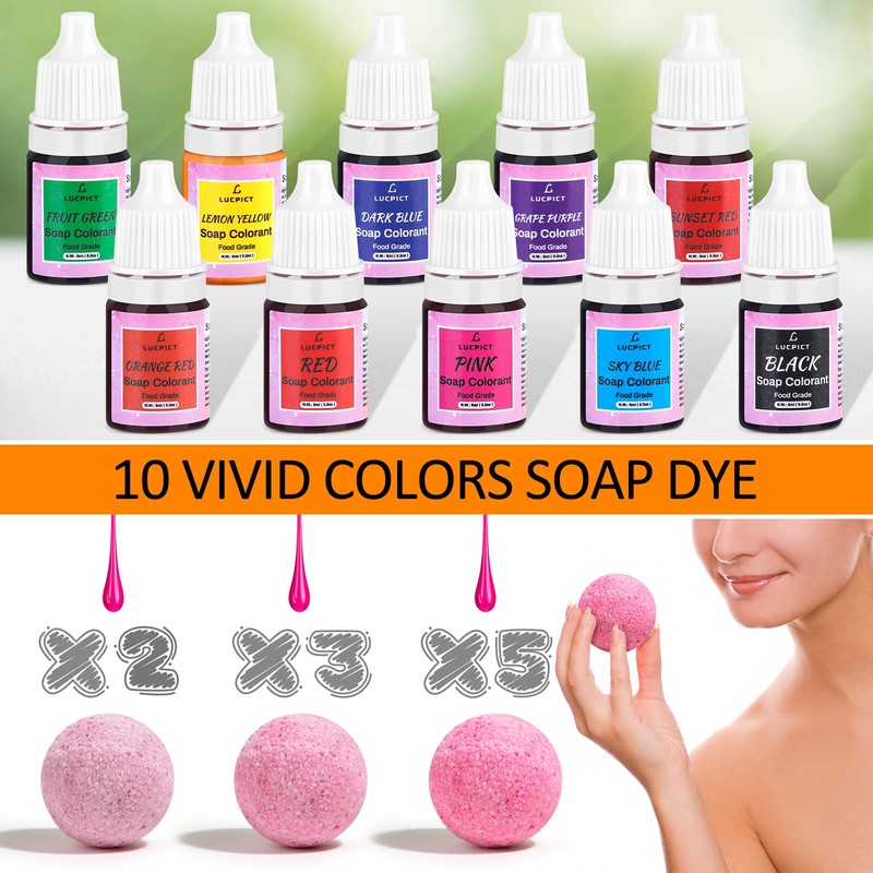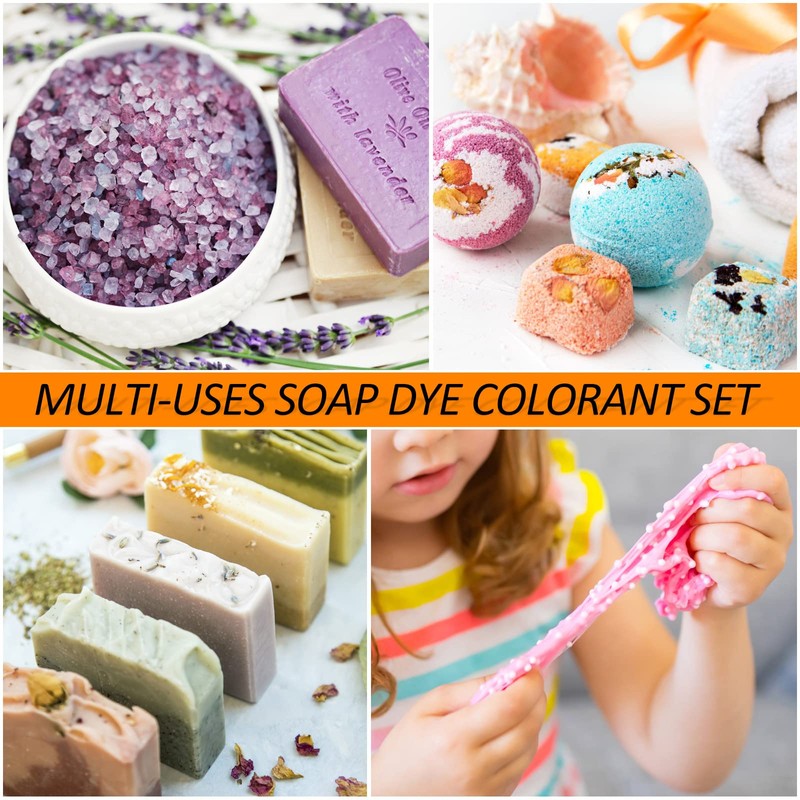 - Multi-purpose soap colour - The liquid soap colours quickly and easily. It is perfect for dyeing CP soaps, bath bombs, bath salts, lotions, slime, clay, etc.Our bath bomb soap paint is also a great gift for your loved ones and friends.