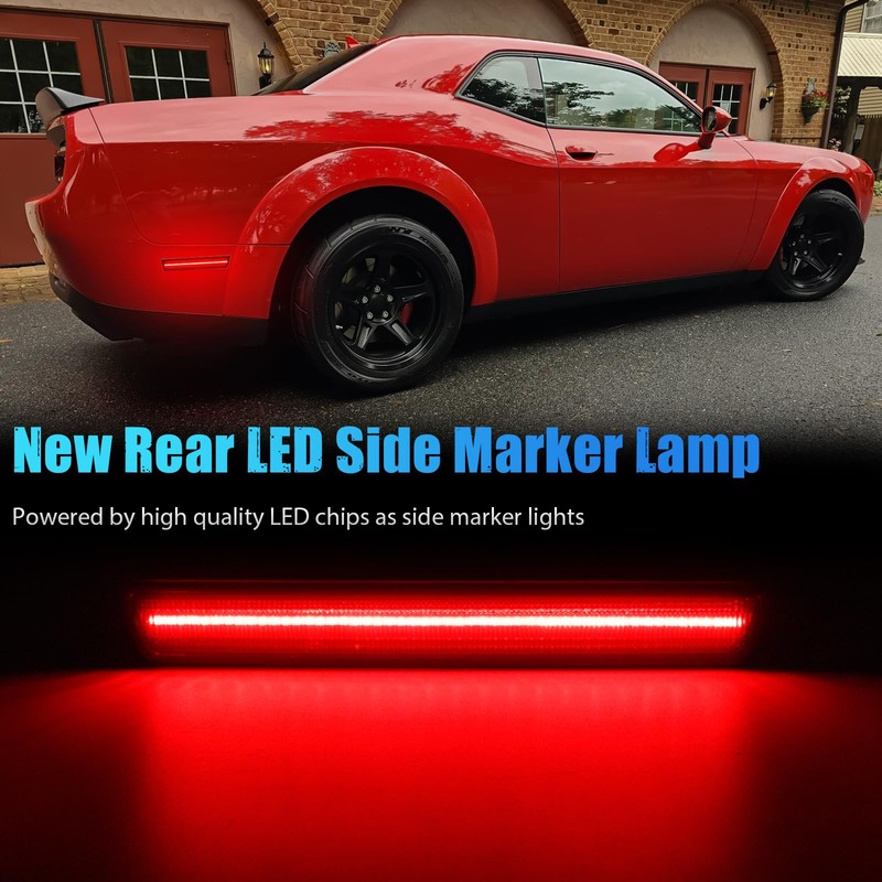 - Compatible Model:Smoke lens LED Side Marker Lights fit for Challenger SRT Demon2018 SRT Hellcat Widebody2018-2022 SRT Hellcat Redeye Widebody 2019-2022 SRT Super Stock 2020-2022 SRT Jailbreak 2022 R/T Scat Pack Widebody 2019-2022/ Shaker,T/A 392 2022 2X Front Side Marker(Amber) 2X Rear Side marker(Red) OEM# Front: 68319391AA(Right), 68319390AA(Left) Rear:68195797AB(Left),68195796AB(Right)