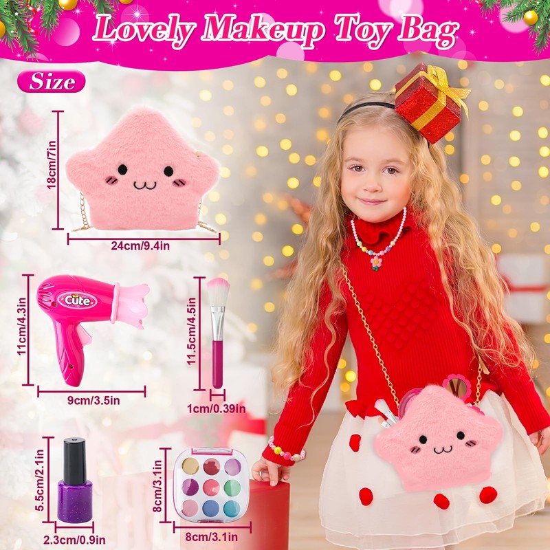 - Pretend Play Makeup Set for Girls : Includes kid-sized lipstick, blush, brushes, nail polish, glitter, and more. Perfect for toddlers who love role play and dress-up fun.