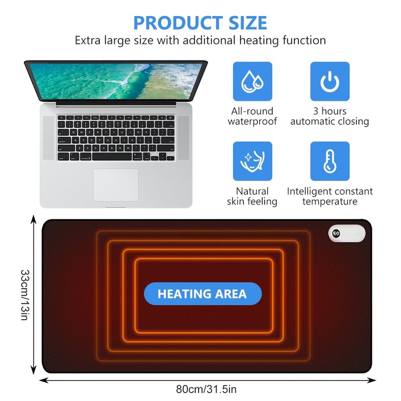 - Quick heating: the heated desk pad measures 80 x 33 cm and is suitable for most office desks. After connecting, heating up takes only 10 seconds without waiting time. Also, our heated mouse pad with the LED temperature display can accurately detect the heating temperature and achieve the effect of real-time temperature monitoring.