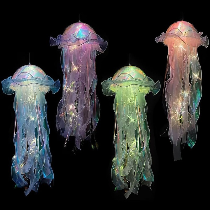 LUFEIS Jellyfish Light, 4PCS Hanging Jellyfish Lanterns, Creative Glowing Jellyfish DIY Atmosphere Decorative Lamp for Ocean Theme Party, Light Up Jellyfish Lamp for Baby Kids Gift Party Supplies