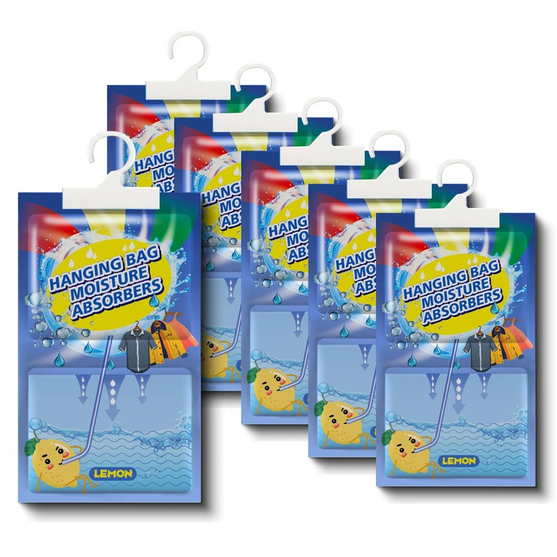 • 👍【Ausreichende Menge】 Das Paket enthält 5 Packungen Feuchtigkeitsabsorber, diese Entfeuchtungsbeuteln bestehen aus Entfeuchtungsbeuteln und Trockenmittel, einfach zu installieren, einfach die Lufttrockner an den Kunststoffregalen befestigen und fertig. Der hängende Luftentfeuchter fängt überschüssige Feuchtigkeit in der Luft auf und sammelt sie im Auffangbeutel, gleichzeitige Freisetzung von Zitronenaroma, um Gerüche in der Luft zu beseitigen.