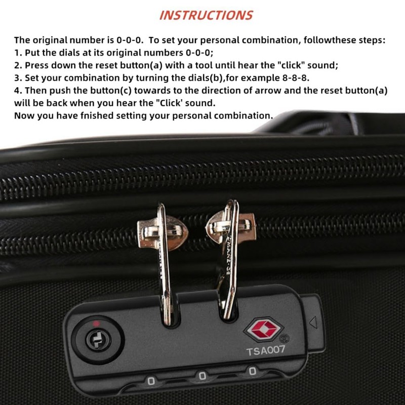 - TSA Approved: The luggage locks are TSA-approved. If Transport Security Officers want to access your bag, they can use their special key to open the lock and relock it when finished.