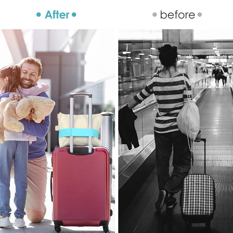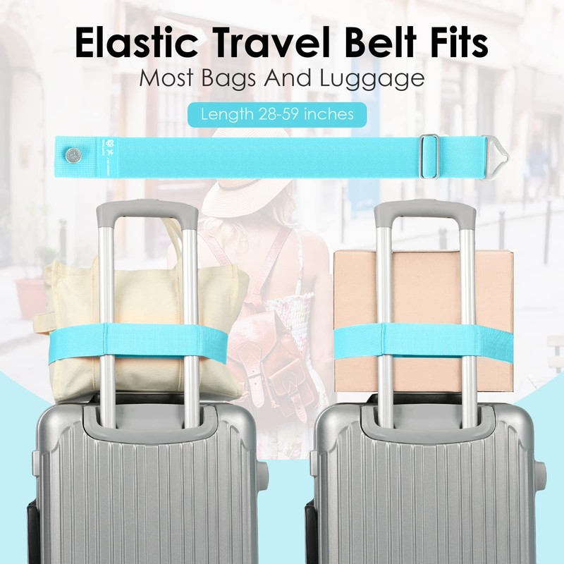 - 【Adjustable And Expandable Belt】This luggage strap is adjustable and expandable to fit most luggage handles, it can expand to 59" to hold backpacks, carry on bags, gift bags, diaper bags, briefcases,Jacket,make-up bag, jackets, neck pillows, and blankets etc. The strap has an elastic loop that easily slips over roller bag handles, then you wrap the rest around the bag you want to secure and the luggage straps can be adjusted freely to fit your needs.