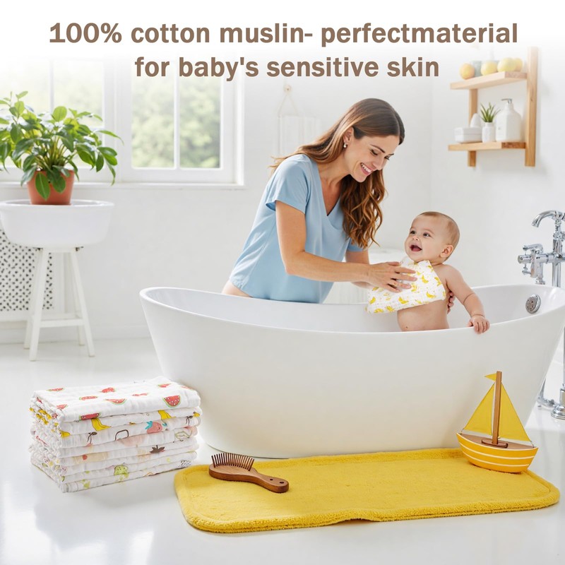 LUHIUMOYA Pack of 8 Muslin Wash Cloths Baby 100% Cotton 25 cm x 48 cm Breathable Durable and Absorbent Safe Gentle Baby Burp Cloths for Boys for Girls (Fruit Pattern)