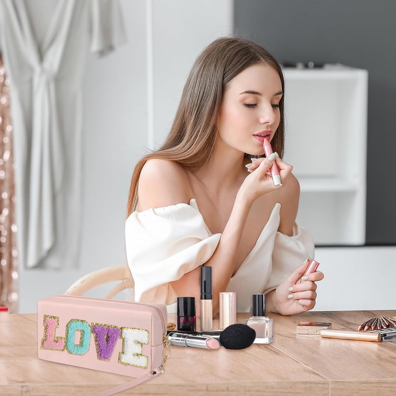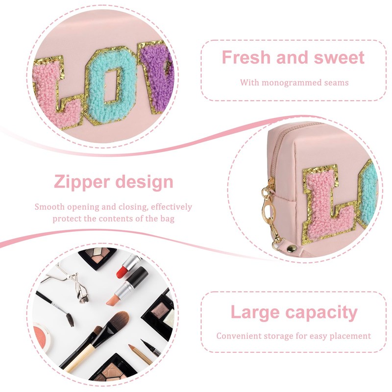 - Embroidiertes Monographen-Design: cosmetic bag sind mit einem zarten „LOVE“-Design bestickt, das Ihrer Schönheitsablage eine persönliche Note verleiht