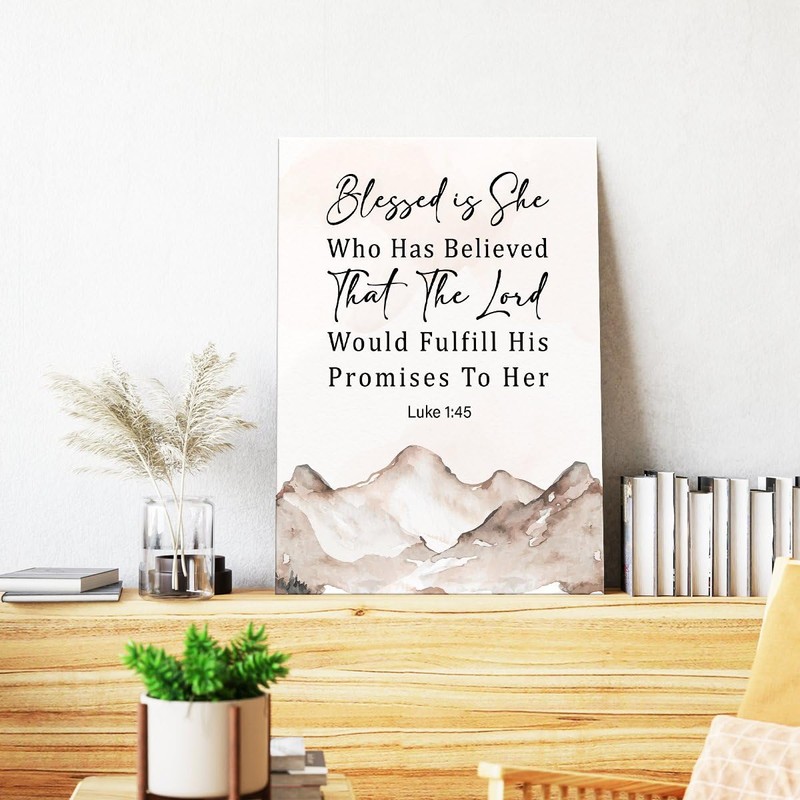 Luke 1:45 Blessed Is She Wall Art,Christian Wall Art for Women,Bible Verse Canvas Art Wall Decor,Scripture Religious Wall Decor for Christian Home Office