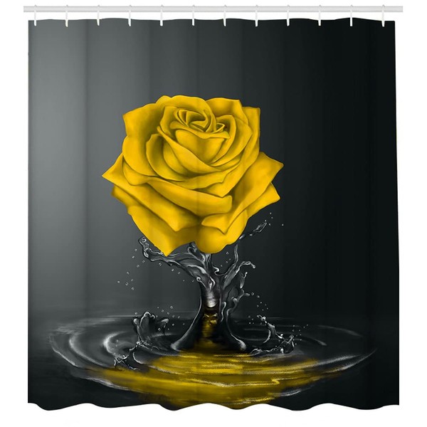 LUKUY Yellow Floral Shower Curtain Roses Reflection in Water Black Bath Curtain Modern Flowers Floral Fabric Bathroom Decor Set Gifts for Women 72x72inch