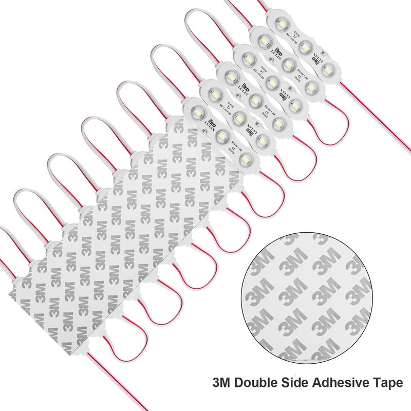 Lulin 100PCS Waterproof Super Bright Led Strip Lights White, 46FT DC12V 3 LED Module for Letter Sign Advertising Sign with Tape Adhesive Backside