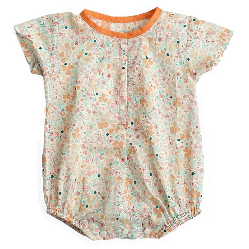 - The bodysuit has elasticized leg openings and a snap placket for easy changes.