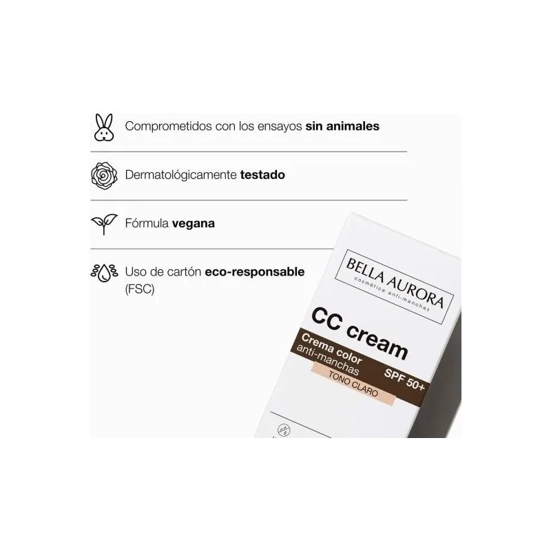 Presentamos nuestra CC Cream Anti-Manchas con SPF 50+: el aliado perfecto para unificar tu piel, protegerla y cuidar su belleza diaria, todo en un solo paso. Beneficios estrella: -Corrige manchas y unifica el tono gracias a pigmentos adaptables (colour-adapt) y activos despigmentantes que atenúan las imperfecciones desde la primera aplicación. -Protección solar muy alta (SPF 50+) frente a UVA, UVB, infrarrojos (IR) y luz HEV — ideal para usar todos los días. -Acabado mate aterciopelado y luminoso, con rápida absorción y sensación ligera en todo tipo de piel. -Textura fluida con aroma fresco a té, naranja y jazmín, sutilmente especiado. -Probada dermatológicamente para máxima seguridad y eficacia. -Ideal para pieles normales a secas (hay otros tonos y fórmulas disponibles para diferentes tipos de piel). Formato del producto Presentación: envase de 30 ml con dosificación cómoda y protección higiénica. Textura: fluida de rápida absorción con acabado mate y natural.