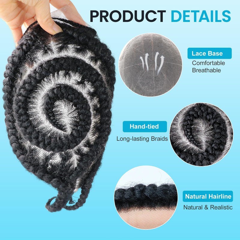 Cap Size: 8x10inch (width x length) Cornrow Box Braids Toupee hair For Men