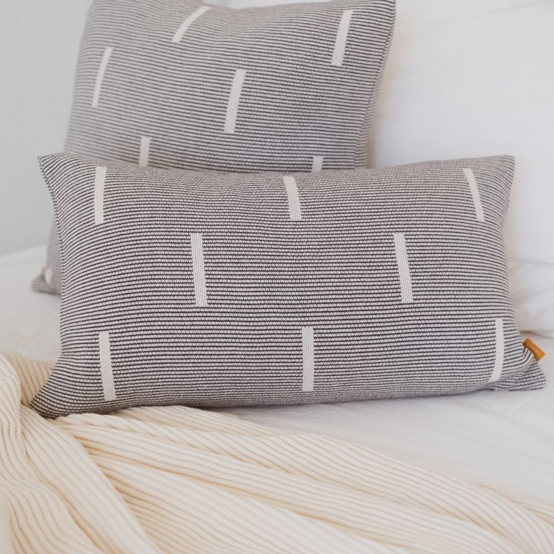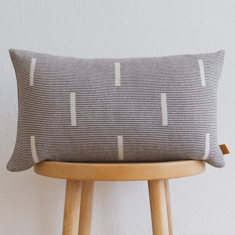 Lumi Living 100% Cotton Knitted Soft Modern Geometric Dash Lines Throw Pillow Cover (12x20, Black & Cream)