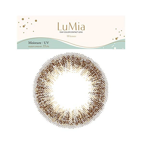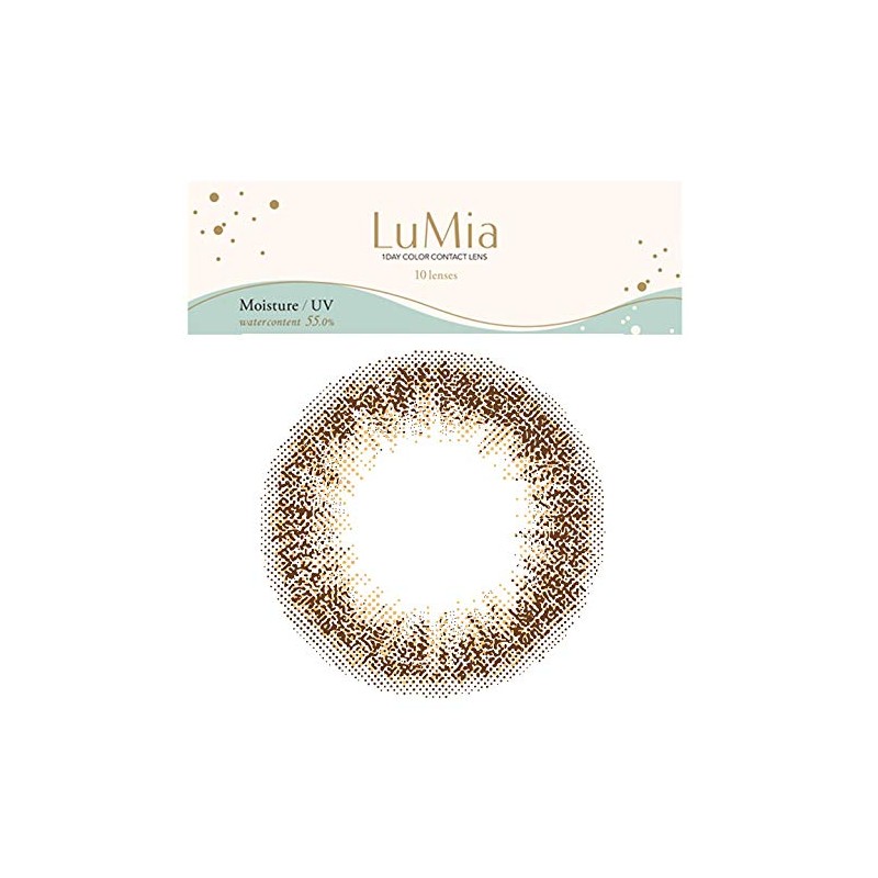 ■LuMiaとは  ・“私らしく、輝く”をコンセプトとした商品ブランドです。  ・“ふんわり瞳になじみ、瞳本来の美しさを引き出す”デザインで、バレずに可愛くなれます。  ・近くで見てもわからないほど、本当にバレずに盛れるので、   バイトや学校、仕事等でも着けられ、ふんわり自然な愛され瞳になれます。 ■レンズのこだわり 【ふんわり瞳になじみ、瞳本来の美しさを引き出すデザイン】  ・ぼかしフチ:裸眼の白目と黒目の境目のようなナチュラルなドットのフチです。  ・瞳に立体感:絶妙なグラデーションのドット配置が瞳に光を取り込んで立体的な瞳になります。  ・こだわりのカラー配合:瞳本来の美しさを引き出す他にはないカラーの組み合わせです。 ■カラー  ・新色(1) ブルネットオリーブ(DIA14.2mm)   深めのダークオリーブと優しいベージュで、奥行きのある黒目がちな瞳に。   美人見えする大人キュートなメイクにおすすめ。  ・新色(2) レディーカーキ(DIA14.2mm)   瞳になじむナチュラルカーキと柔らかなイエローで、上品なクールさをまとう瞳に。   オフィスはもちろん、おでかけの時のしっかりメイクにもおすすめ。  ・新色(3) クォーツブラウン(DIA14.2mm)   色素薄めのベージュMIXで、水晶のように洗練された透明感のある瞳に。   ほんのり明るい、ニュアンスのある女っぽ顔メイクにおすすめ。  ・スウィートブラウン(DIA14.2mm / 14.5mm)   ぬくもりのあるブラウンと甘めピンクで、女の子の憧れ、愛され瞳に。   オフィスや学校はもちろん、普段デートの時など、上品なナチュラルメイクにおすすめ。  ・ヌーディーブラウン(DIA14.2mm / 14.5mm)   ほんのり明るいブラウンとヌーディーなベージュで、可愛く抜け感のある瞳に。   普段使いはもちろん、すっぴんでもよく馴染むので、素肌っぽいナチュラルメイクにおすすめ。  ・シフォンオリーブ(DIA14.2mm / 14.5mm)   ふんわりまとうオリーブブラウンとさりげないピンクで、かっこよさの中に可愛らしさを感じる瞳に。   ニュアンスを出したり、少しだけ雰囲気を変えたい時など、かっこ可愛いメイクにおすすめ。 ■スペック  ・高含水レンズ:水分を多く含んでいるため、レンズが柔らかく、快適な付け心地です。  ・紫外線から瞳を守る:UV吸収剤配合により紫外線UV-Aを約50%、UV-Bを 約95%カットします。  ・1日使い捨てレンズ:面倒なケアがいらず、毎日新品のレンズで清潔&快適。  ・瞳にやさしい「BMW 3D wrap製法」:レンズの両面がスムーズになっており、着色部分が直接瞳に触れない構造になっています。