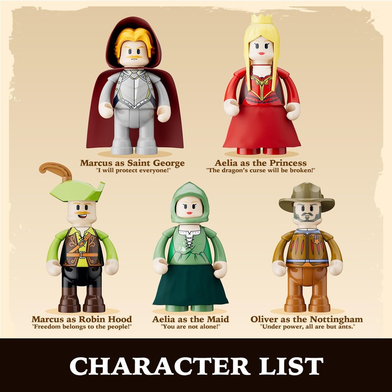 - Exquisite Detail Design: Meticulous details feature rich accessories like swappable minifigure costumes and expressions for dual playsets (St. George & the Dragon, Robin Hood), scene-specific backdrops, and props such as a dragon figure. These enable personalized storytelling and visual depth in every performance.