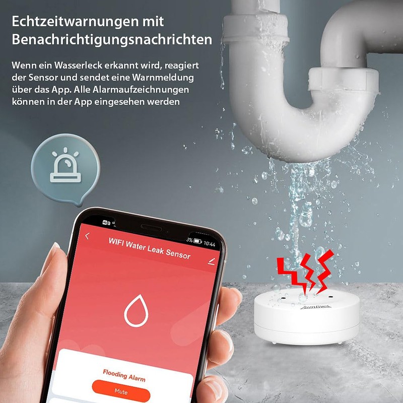 PROTECT YOUR HOME The device detects water leaks early in the kitchen, bathroom or laundry room. So you can react quickly and avoid major damage.