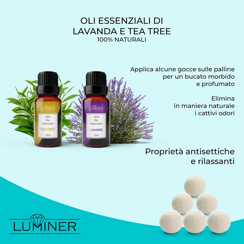 - 2 NATRLICHE ?THERISCHE ?LE Mit unseren 100 % natrlichen Duft?len aus Lavendel und Teebaum?l reicht es aus, 2-3 Tropfen reines ?therisches ?l auf die Trocknerb?lle zu geben, um einen wunderbaren Frischeduft zu erzeugen und unangenehme Gerche zu beseitigen.