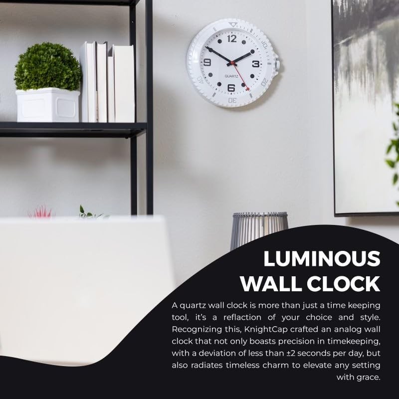 - Luminous Wall Clock: A quartz wall clock is more than just a timekeeping tool; it's a reflection of your choice and style. Recognizing this, KnightCap crafted an analog wall clock that not only boasts precision in timekeeping, with a deviation of less than ±2 seconds per day, but also radiates timeless charm to elevate any setting with grace.
