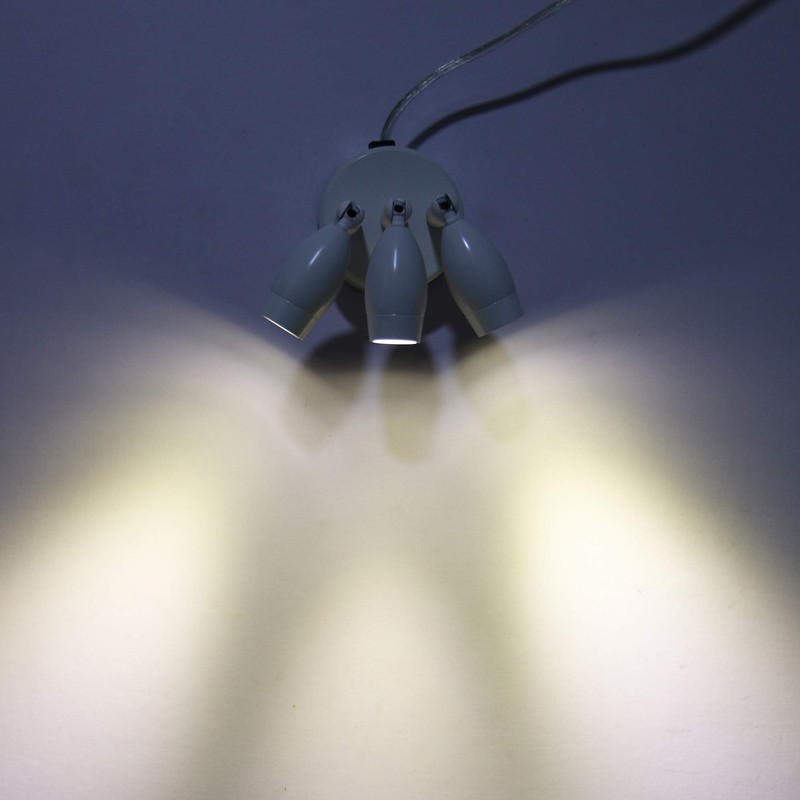 LUMINTURS 3W Three Heads LED Wall Mount Spotlight Adjustable Picture Light Plug In Lamp On/Off Button Cabinet White Finish Nature White