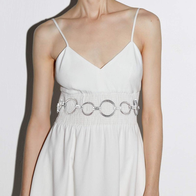 LumiSyne Fashion Chain Belt For Women Waist Chain Gold Silver Shining Metal Ring Adjustable Length Dress Belt Body Chain For Party Wedding Daily(Silver)
