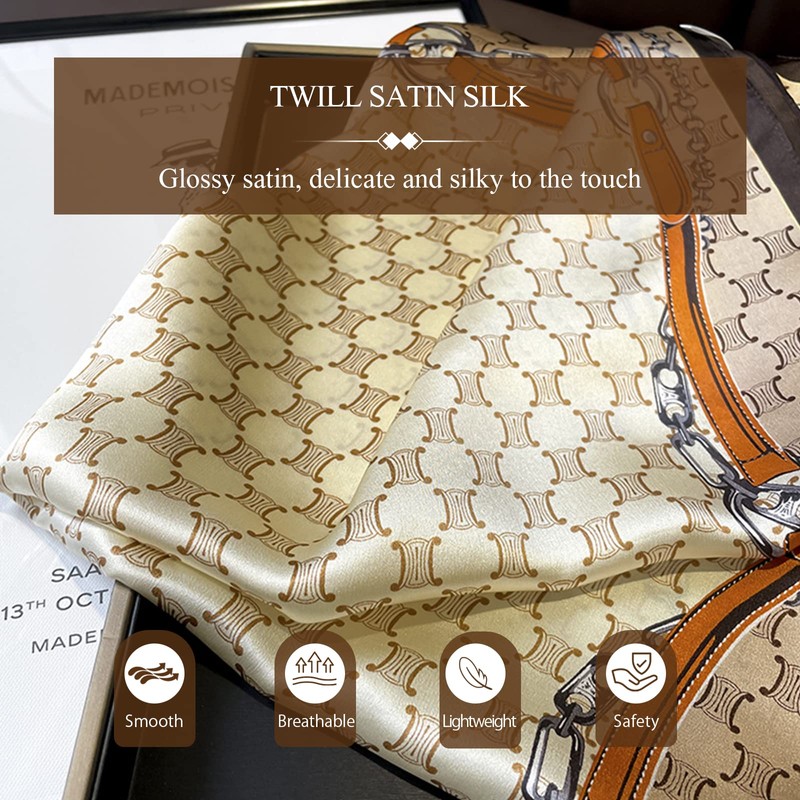 - Soft natural silk: the silk scarf is made of high-quality mulberry silk with a matte satin texture. The skin-friendly and breathable fabric gently cares for the health of the skin. The 12 momme silk fabric is woven in a tight and fine twill weave, soft yet with a stereoscopic texture. The natural fibre of mulberry silk can avoid the problems of static electricity and has good heat retention and elasticity.