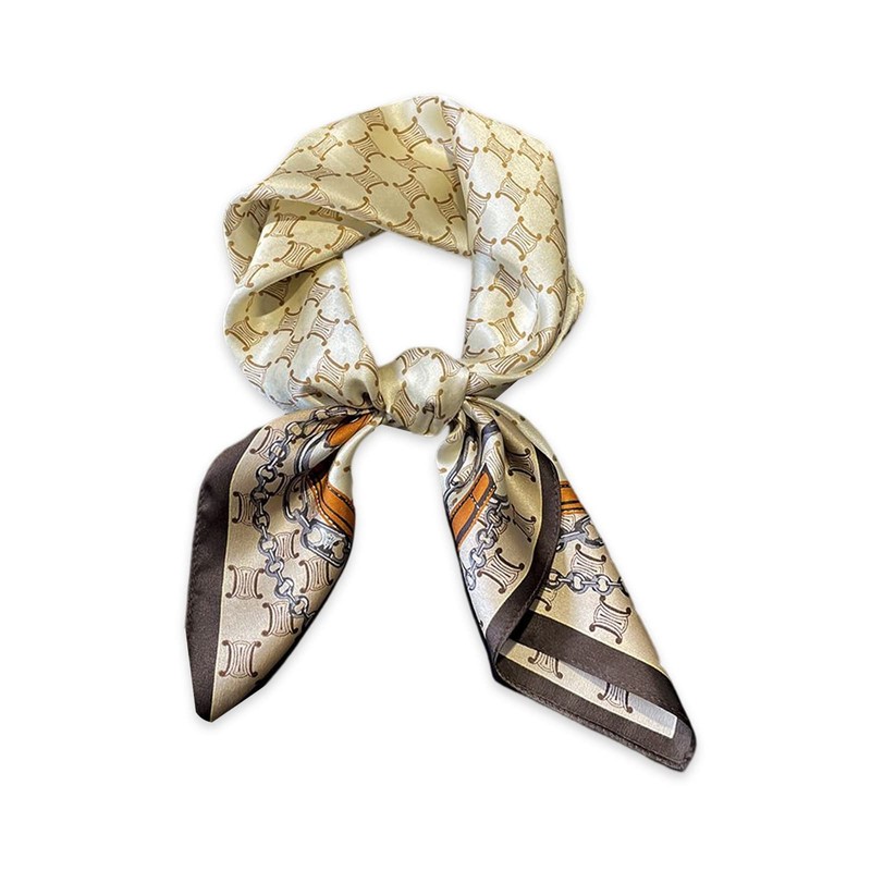 LumiSyne Women's Square Silk Scarf 70 x 70 cm Retro Printed Geometric Chain Monogram Pattern Lightweight Satin Square Scarf Multifunctional Neckerchief Headscarf Bandana Headpiece Headband, Brown