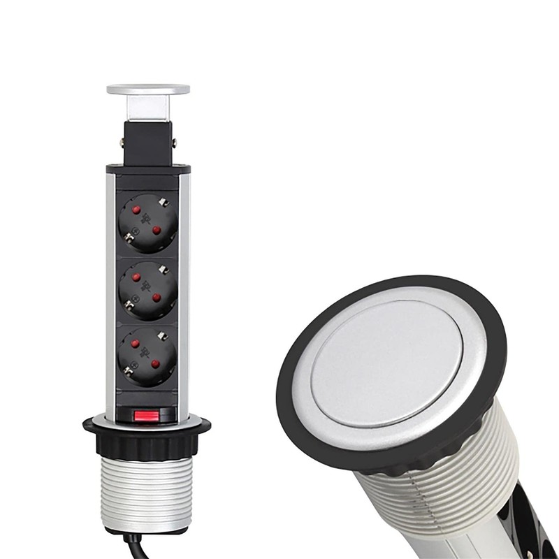 Lumonic LiftBox 3 x Schuko Sockets, Table Sockets, Aluminium, 3 Sockets with 230 V in Tower Max. 3600 W, with Borehole Size 107 mm, Ideal for Installation
