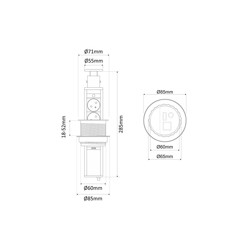 - Details – The extendable multiple socket comes with the following details: the length of the power cable is 180 cm, the drill hole required for installation should have a diameter of 107 mm