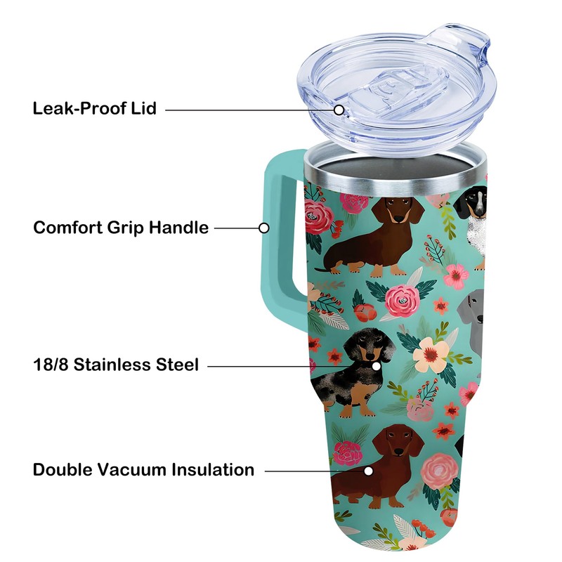 Lumumanber 40 oz Dachshund Tumbler with Handle and Straw, Dog Travel Mug Water Bottle, Stainless Steel Insulated Cup with Lid and Straw, Birthday Christmas Gifts
