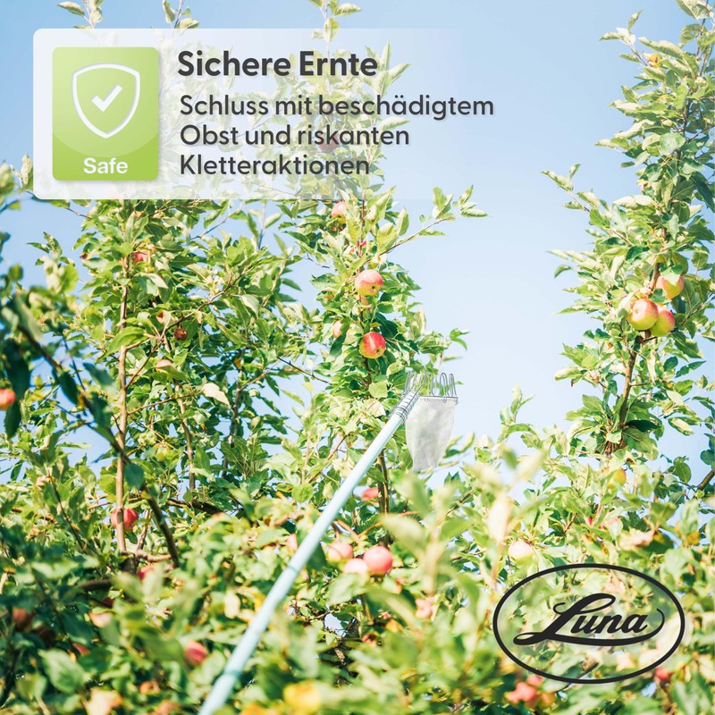 Luna® Apple Picker Made of Galvanised Steel Wire – Fruit Picker for Gentle Fruit Harvesting – Plum Picker for Stems from 2-2.5 cm – Apple Pluecker with Removable Collection Bag – Picking Aid – Made in