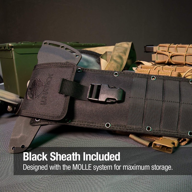 - Black sheath: Designed with a MOLLE system for maximum use and storage.
