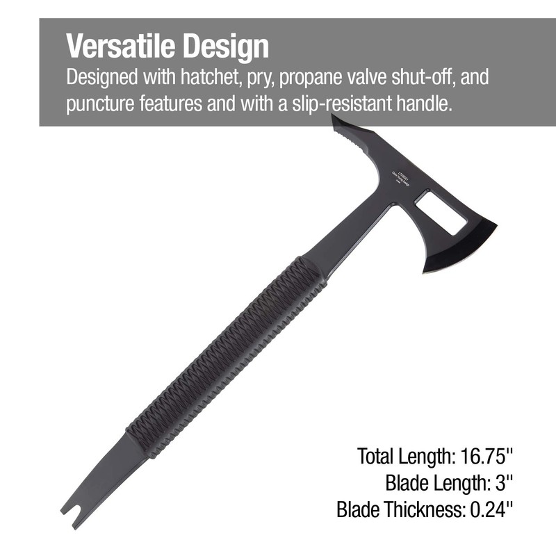 - Versatile design: Designed with a hatchet, a pry, a propane valve shut-off, and Puncture features.