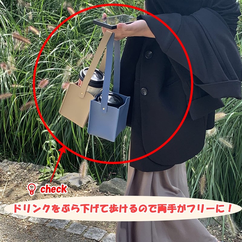 Lunali Cup Holder Faux Leather Cup Sleeve Box Shape Take Out Drink Handbag Convenient Bag Blue (Blue)