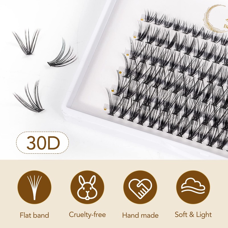 - The very thin and flat band of the cluster eyelashes is perfect for DIY eyelash extensions. Individual cluster eyelashes look super realistic, perfect D curl, no eyelash curler required and have many types of eyelash clusters to choose from. Lunamoon cluster eyelashes individual are reusable.