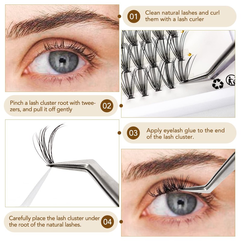 - As an eyelash stylist for yourself, you can make different eyelash styles yourself depending on the occasion. Eyelash clusters also very suitable for beginners. Super easy to get cluster lashes out of the adhesive strip, quick and easy beautiful look. DIY eyelash extension, save time and money.