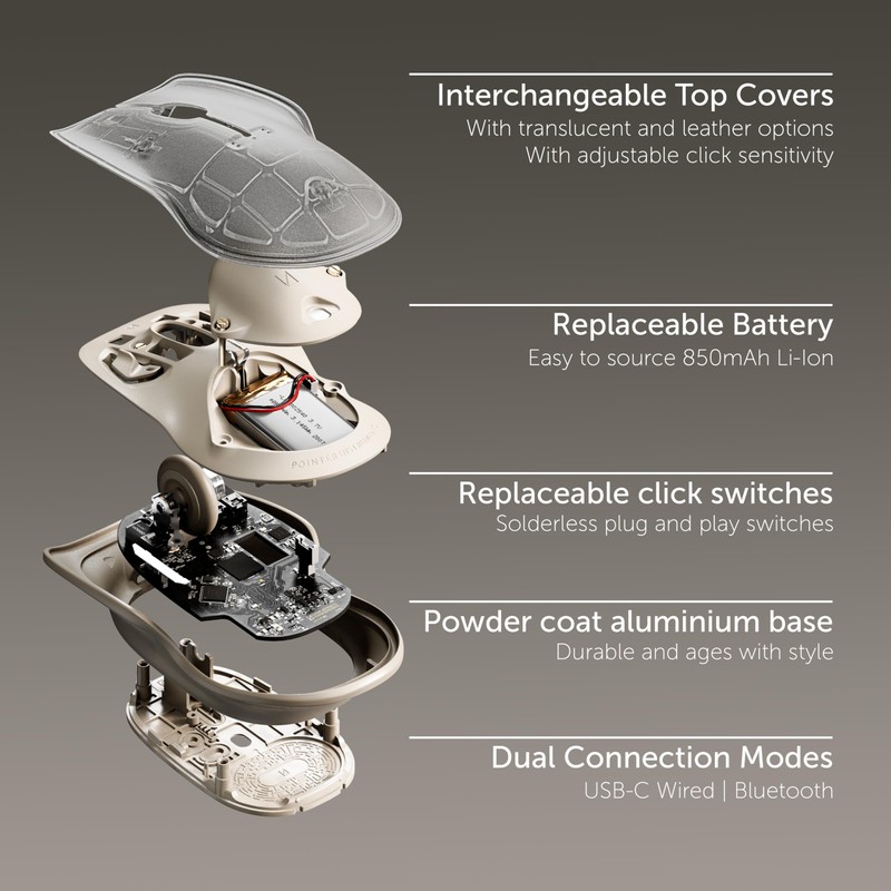 • Smart Performance, Built to Last – Powered by a 3.7V 850mAh Li-ion replaceable rechargeable battery, it features USB-C charging, multiple DPI options (800–3000), and replaceable components to support long-term use.