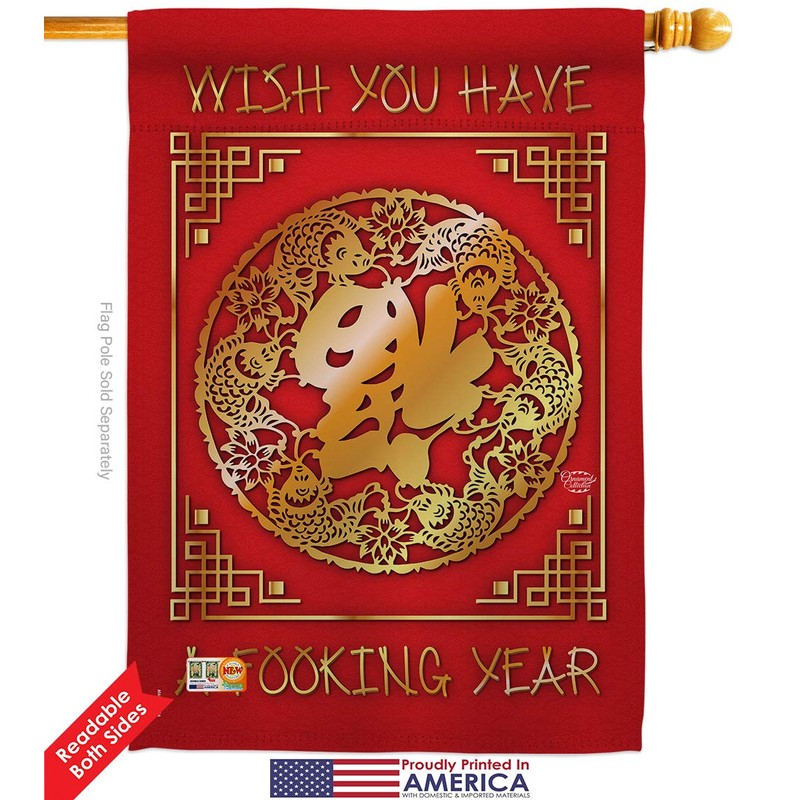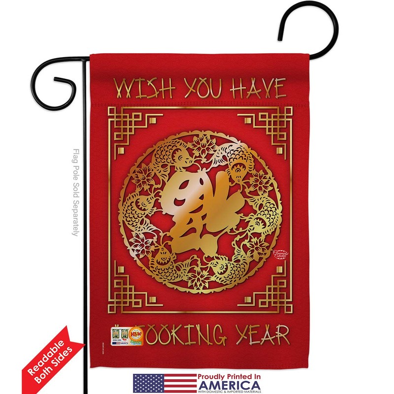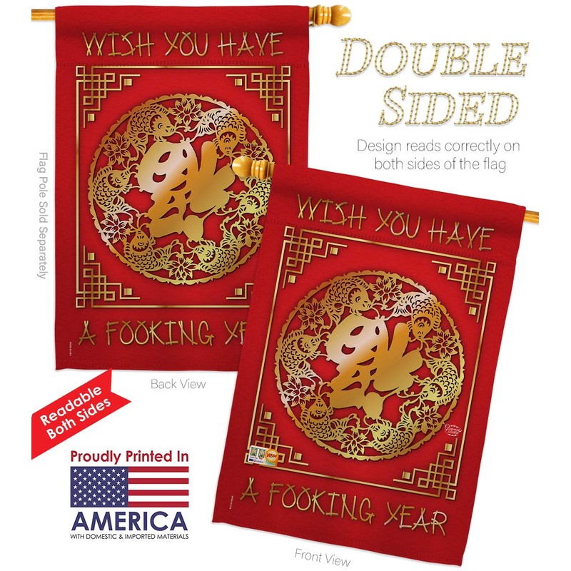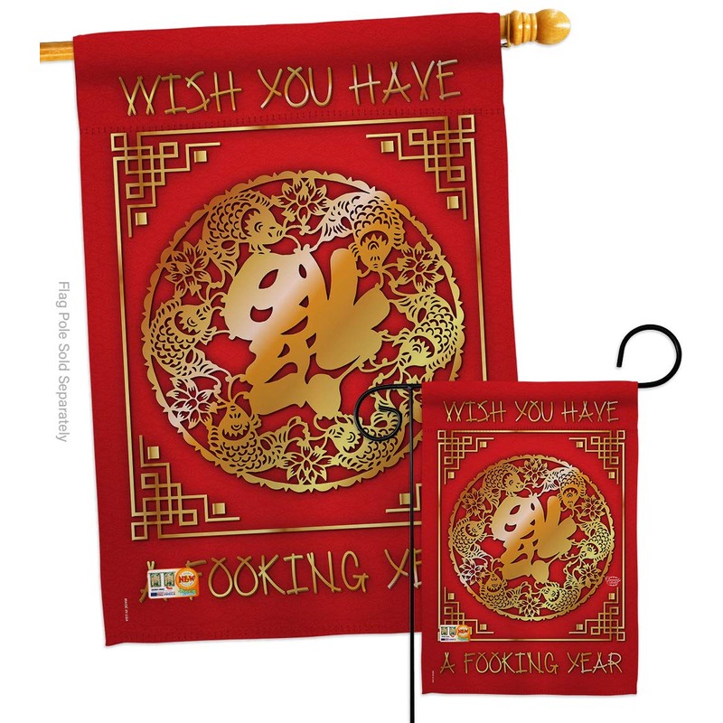 Lunar New Year Wish you have a Fooking (Luck Arrive This Year) Garden House Flags Set Winter Good Luck Prosperous Seasonal Arrival Blessing Small Gift Yard Banner Double-Sided Made In USA 28 X 40