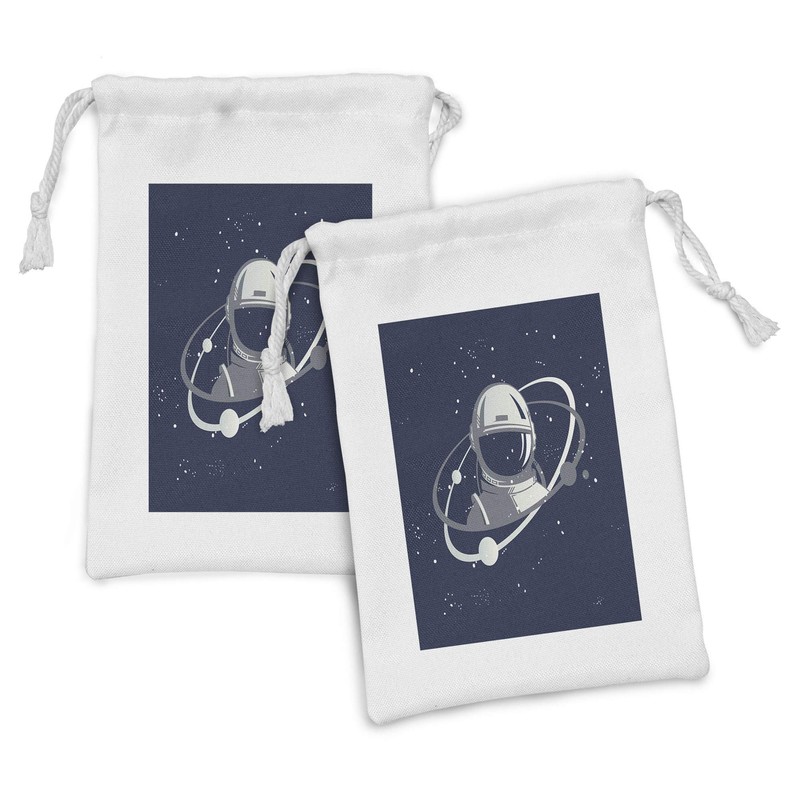Lunarable Cosmic Fabric Pouch Set of 2, Outer Space Theme Astronaut Portrait Galaxy, Small Drawstring Bag for Toiletries Masks and Favors, 9" x 6", Night Blue Grey Yellow