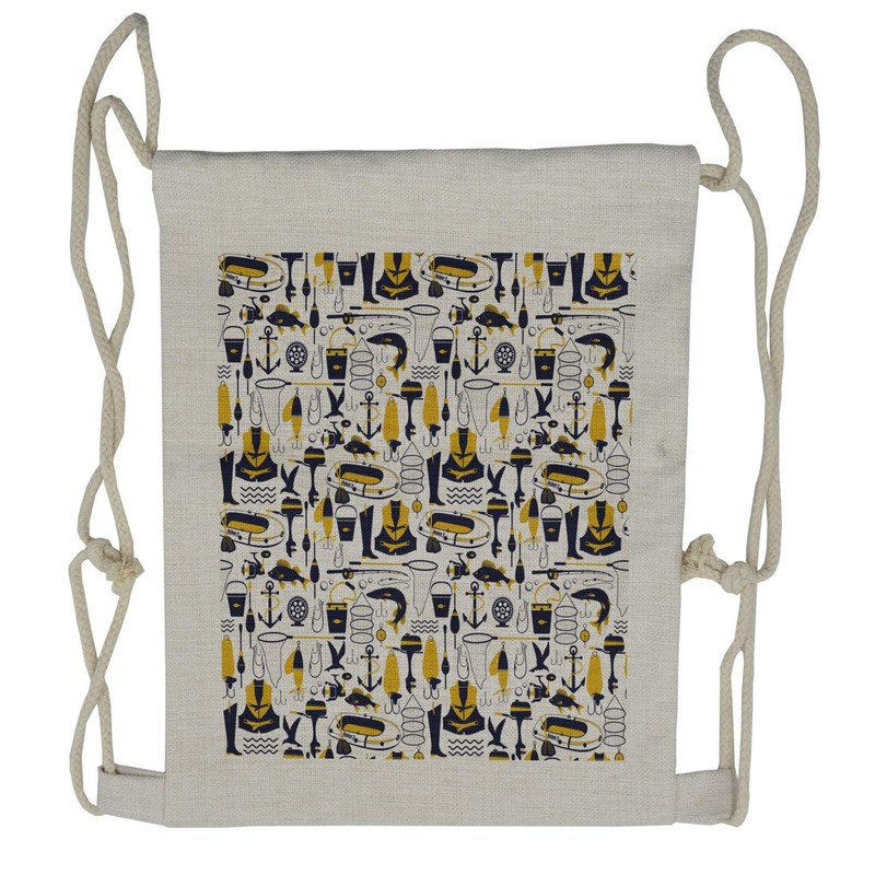 Lunarable Fish Net Drawstring Backpack, Fish Theme Anchor Marine, Sackpack Bag