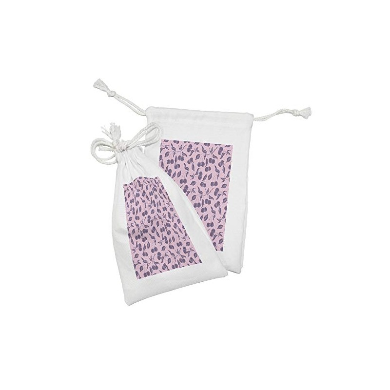 Lunarable Fruits Fabric Pouch Set of 2, Illustration of Fresh Cherries on Branches with Leaves in Spring Tones, Small Drawstring Bag for Toiletries Masks and Favors, 9" x 6", Blush and Pale Eggplant