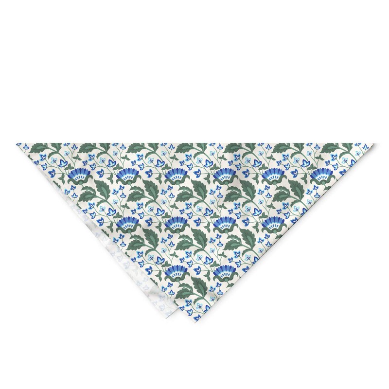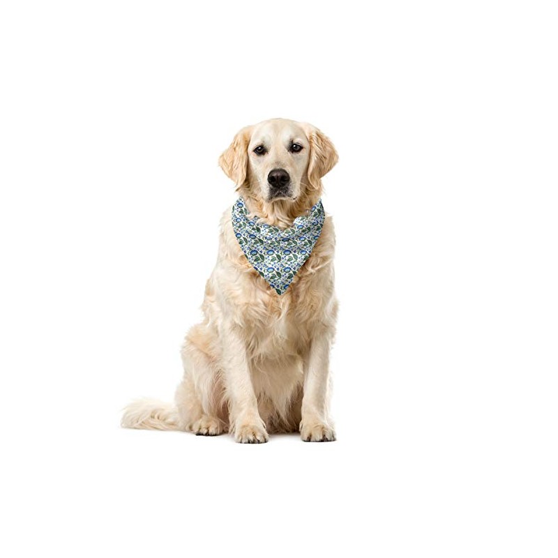 Lunarable Jacobean Bandana Collar, Herbal Pattern Pastoral, 16" X 16", Blue Green Cream