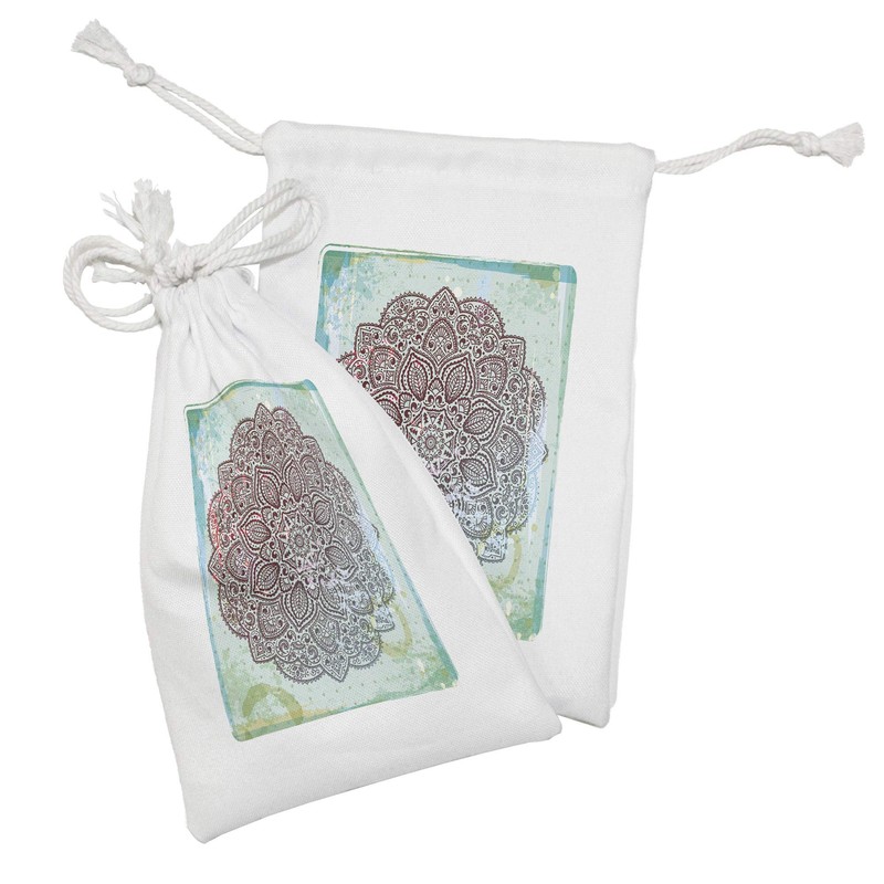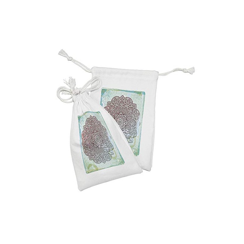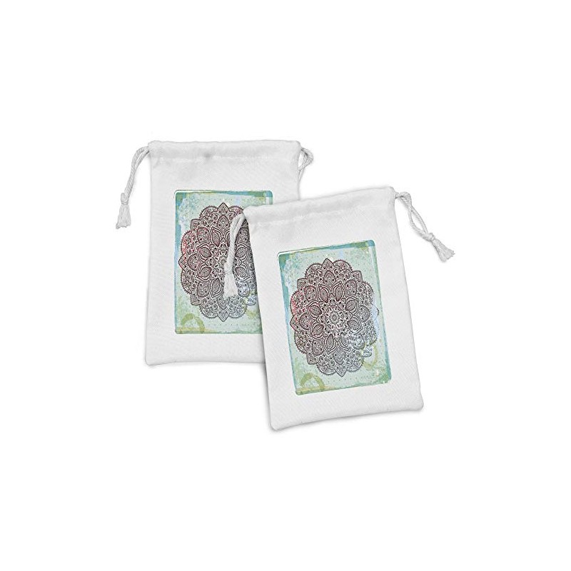 Lunarable Mandala Fabric Pouch Set of 2, Grungy Eastern Pattern Nature Floral Petals and Polka Dots Background, Small Drawstring Bag for Toiletries Masks and Favors, 9" x 6", Turquoise Maroon