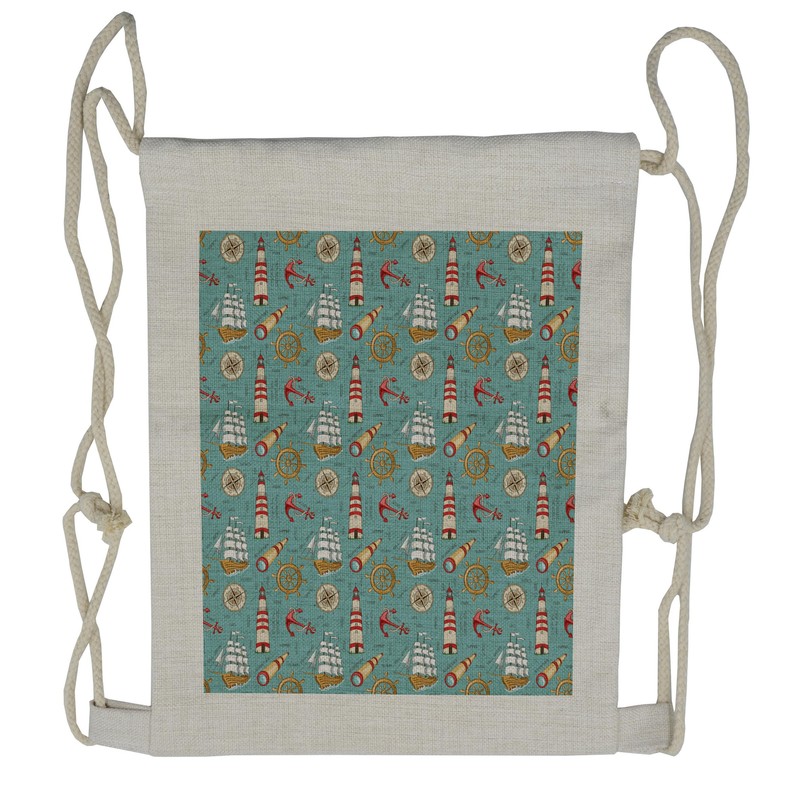 Lunarable Nautical Drawstring Backpack, Sailing Theme Ship Boat, Sackpack Bag
