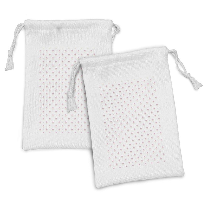 Lunarable Pink Polka Dots Fabric Pouch Set of 2, Pastel Toned Pattern with Creamy Cupcakes Dessert Art, Small Drawstring Bag for Toiletries Masks and Favors, 9" x 6", Pale Pink Eggshell