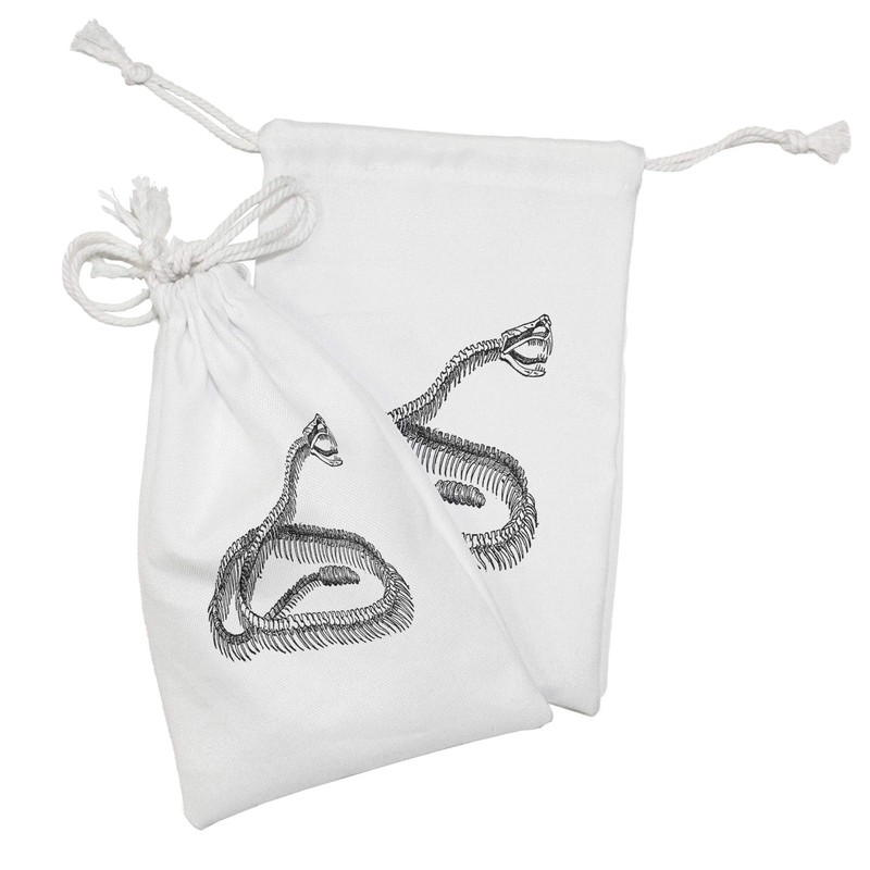 Lunarable Reptile Fabric Pouch Set of 2, Black and White Reptile Skeleton Illustration Moving on Ground Wild Exotic Snake, Small Drawstring Bag for Toiletries Masks and Favors, 9" x 6", Black White