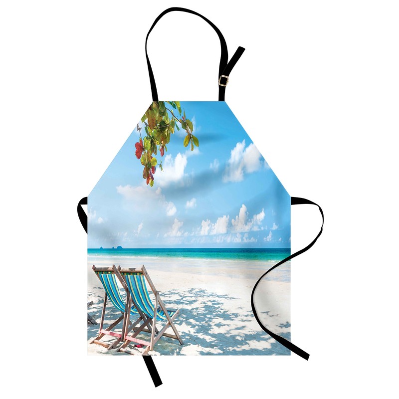 Lunarable Seaside Apron, Beach Chairs Under Tree Shade Tourist Resort Relax Seascape, Small Apron Bib with Adjustable Ties for Baking Painting, Small Size, Turquoise Pale Blue