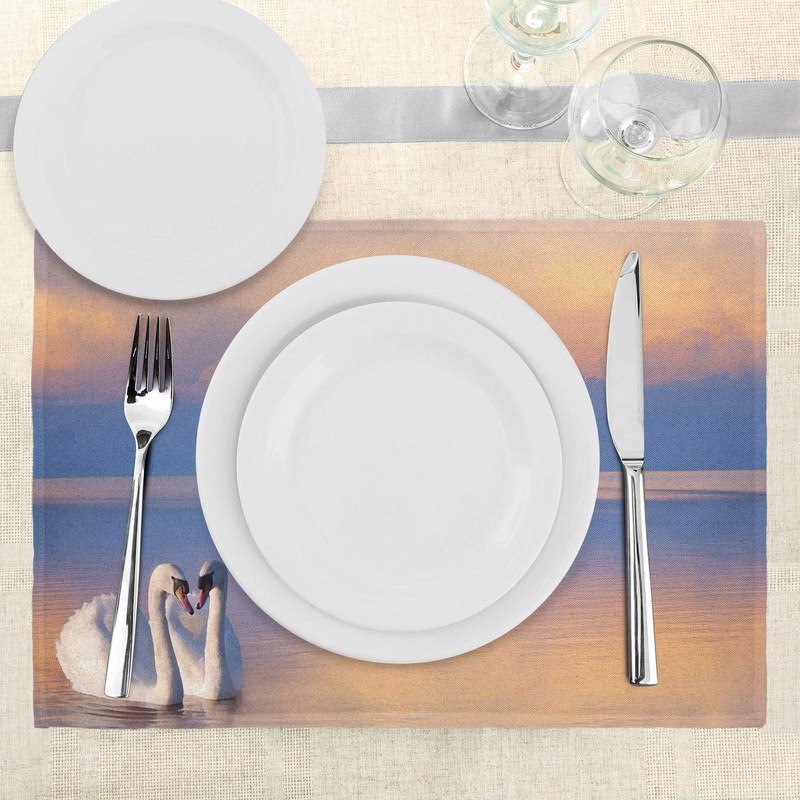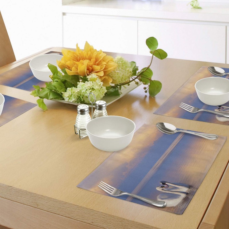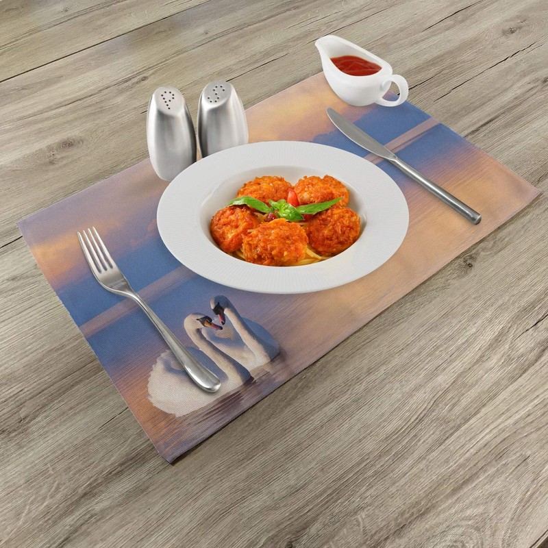 Lunarable Swan Place Mats Set of 4, Swan Couple Floating Lake Happiness Soul Mates United Purity Animals Love Image, Washable Fabric Placemats for Dining Table, Standard Size, Pink Blue