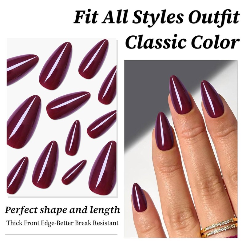- Premium adhesive nails: Made from high-quality ABS material, these medium-sized almond nails are pre-molded with a thin and flexible rear edge for a seamless fit and comfortable wear. The thick upper edge offers better fracture resistance and prevents cracks