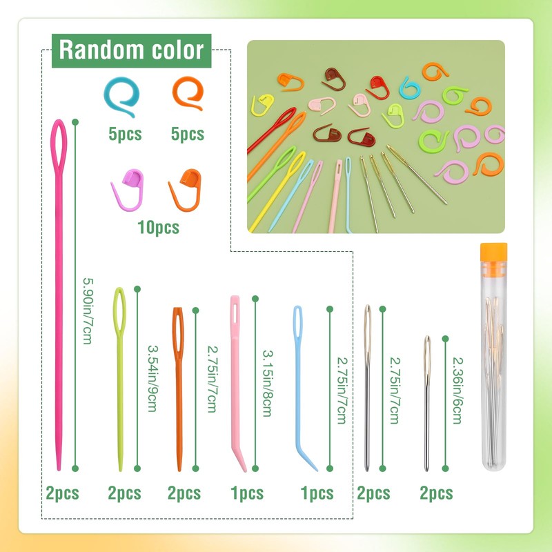 - Chenille Knitting Yarn Set: This chenille knitting yarn set includes 3 skeins yarn, 10pcs stitch marker clip, 10pcs open stitch marker ring (S/ M), 6pcs plastic large eye needles (7/9/15cm), 4pcs blunt large eye needles (6/7cm), 2pcs curved needles (7/8cm).