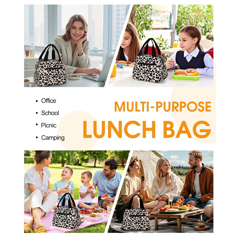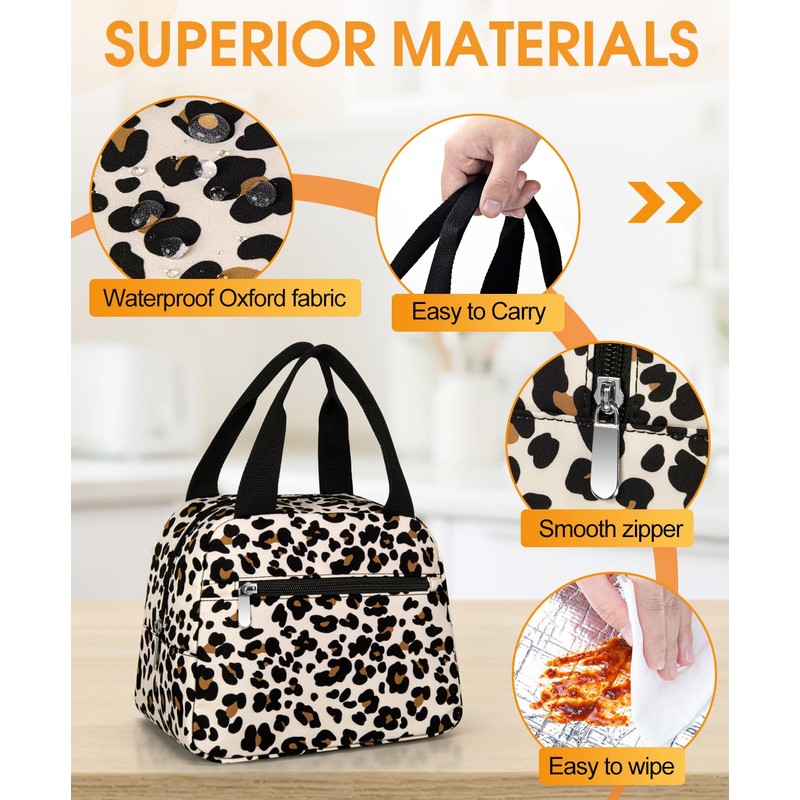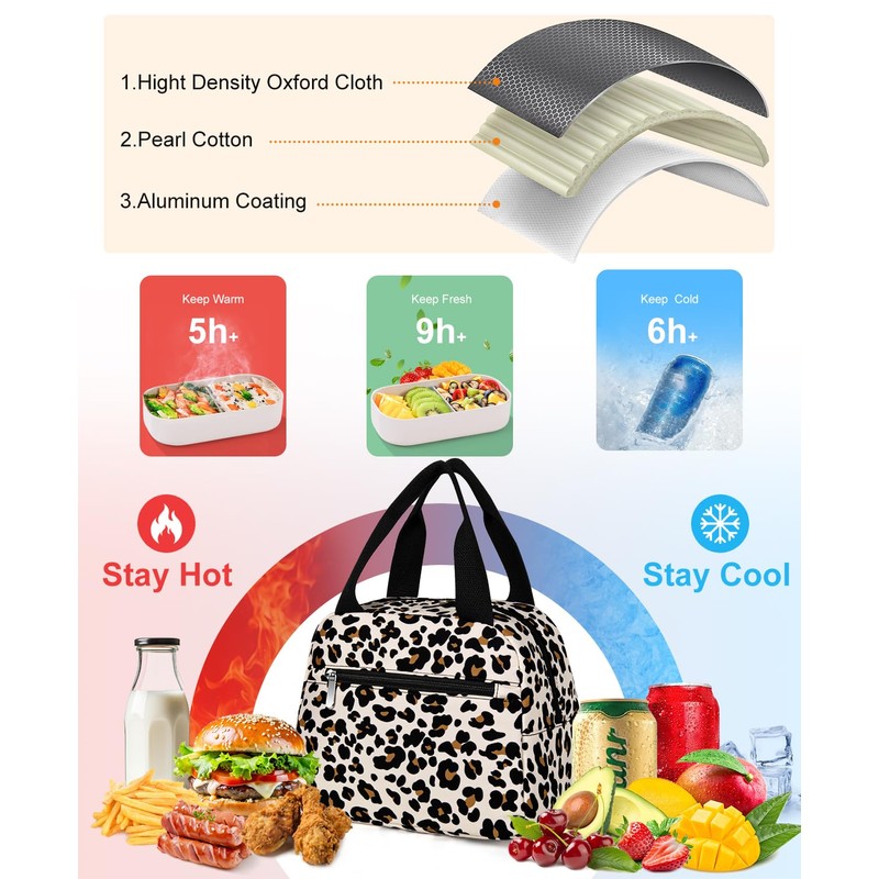 Lunch Bag, Insulated Lunch Bag for Women Men Waterproof Lunch Box Lunch Tote Bag Large Capacity Reusable Insulated Cooler for Work Picnic Beach or Travel,Leopard Print